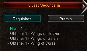El NPC te pedire 3 tipos de wings diferentes, como en el ejemplo de la imagen. Cada NPC tiene una combinacion diferente asi que asegurate de realizar el cambio con el que corresponda, en nuestro ejemplo el mismo te pide: WINGS SM, BK Y MG, todas S1.