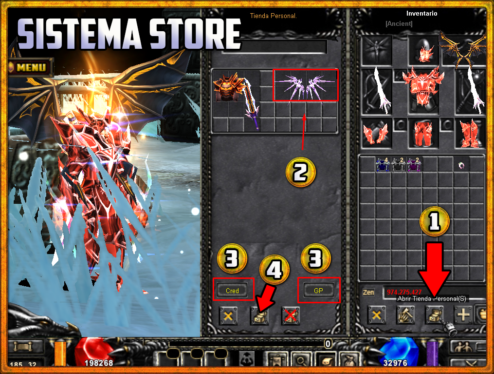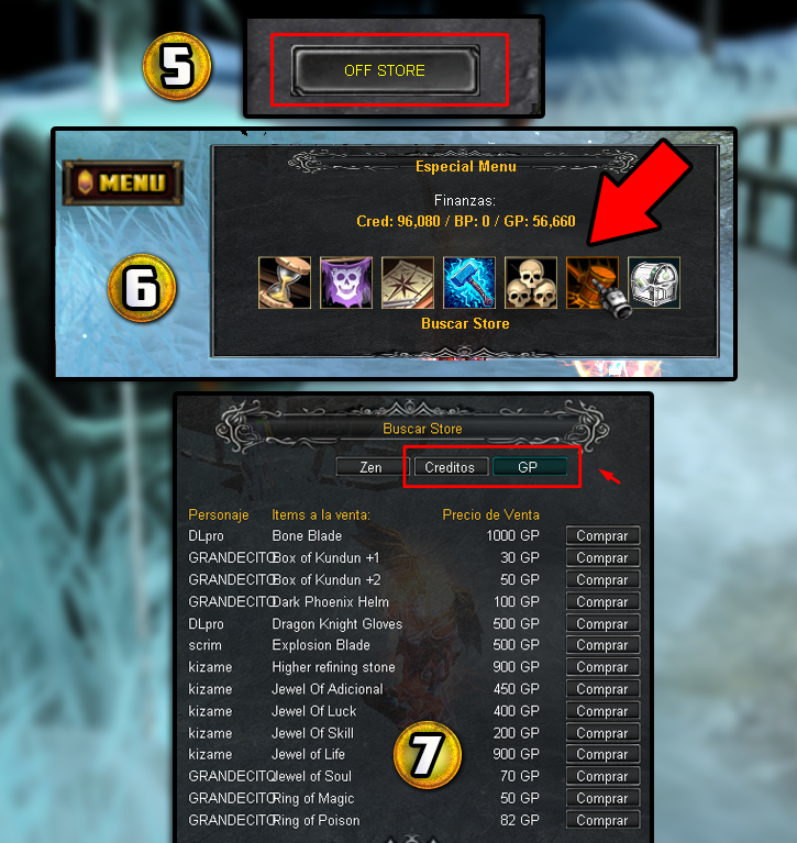 Una vez activo el Store les aparecerá el botón de OFF STORE, este sirve si tienes pensado cerrar el mu, su función es dejar tu personaje "conectado" mientras cierras el juego.